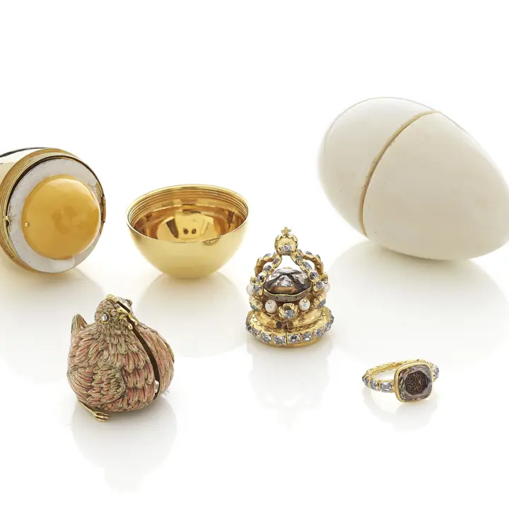 Fabergékammeret er lille, mørkt og næsten hemmelighedsfuldt, men lad dig endelig ikke narre af den grund. I det smukke rum kan du se nogle af vores helt enestående genstande – som for eksempel Hønen og Guldægget, de smukke kæder med påskeæg og en gigantisk champagnekøler i forgyldt sølv.