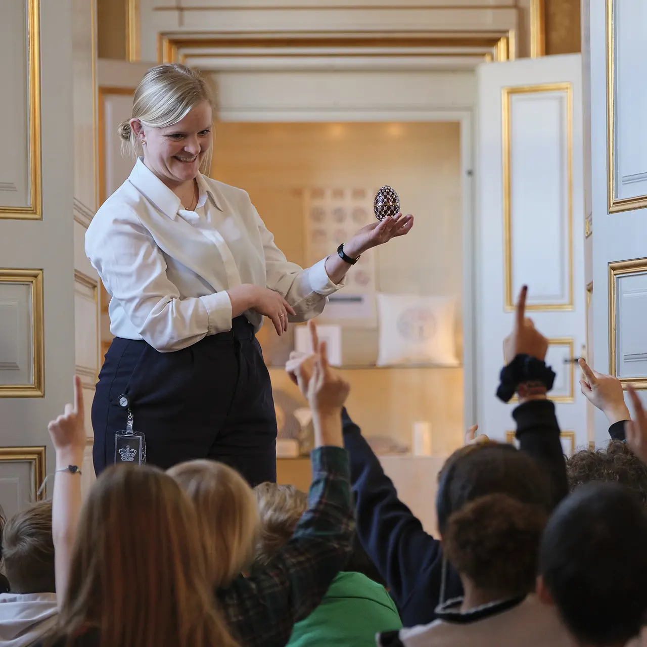 Eleverne kommer bl.a. til at høre om H.M. Dronning Margrethes påsketradition og om Prinsesse Dagmar, der senere blev kejserinde af Rusland og hvert år modtog verdens nok mest ekstravagante påskeæg af sin mand - nemlig de eksklusive Fabergé-æg. Der er umiddelbart langt til vores påskeægstradition i dag, men konceptet med overraskelsen er helt den samme, som dengang Kejserinden fik sine påskeæg, selvom den i dag oftest smager mere af chokolade end guld og diamanter...