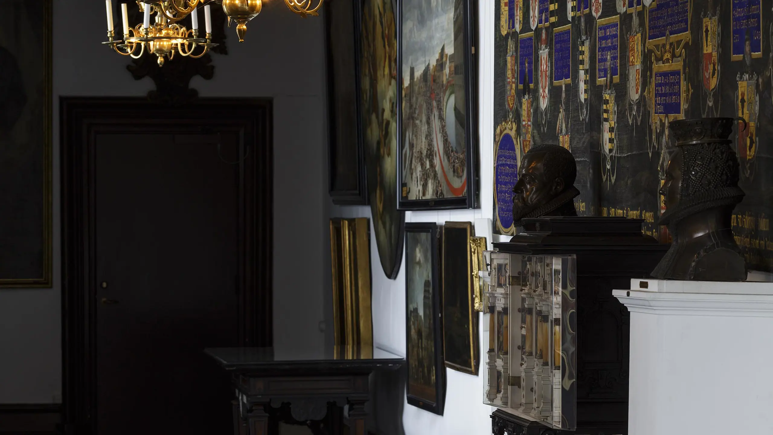 Originally, the Stone Corridor was divided in two, which is also why the stucco ceiling is different in the two ends of the corridor. The ceiling from the time of Christian IV has only been preserved at the north end, the end where the Winter Room is located. The many paintings in the Stone Corridor related to Christian IV, and in the middle of the corridor, you can see Christian IV’s impressive pedigree, flanked by busts of his parents, Frederik II and Queen Sophie.
