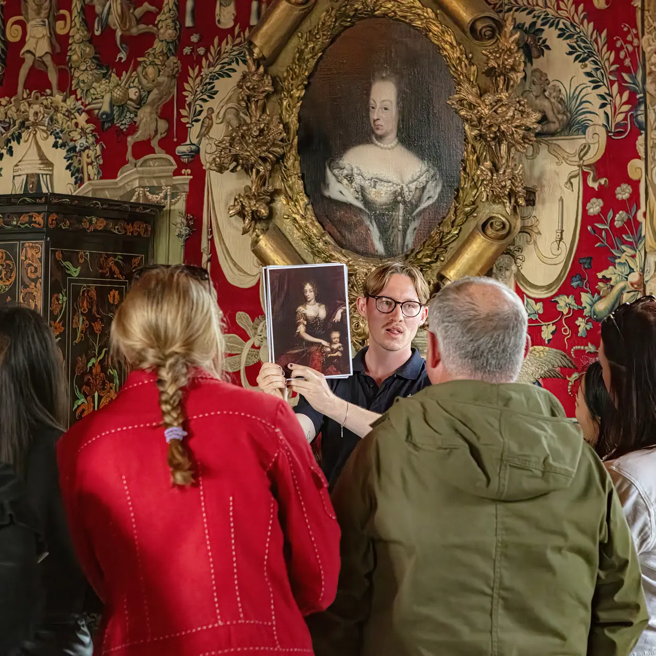 Kom med på en vandring gennem den kongelige kunstsamling på Rosenborg Slot, og udforsk hvordan portrætter og malerier belyser monarkiets historie i 1600- og 1700-tallet. På denne tur vil du få et indblik i, hvordan monarkiet har brugt kunsten som medie til at udstråle magt og storhed.